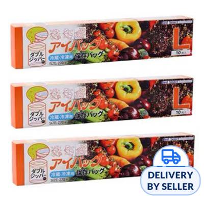 BUNDLE OF 3 Zipper Bag 1box 10bags Food Grade PE/Freezer Use / Moist Proof/Reusable/Double Lock/ Space Efficient/25x29cm