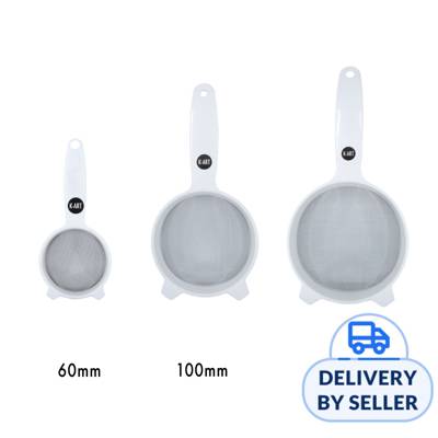 The strainer is made of stainless steel fine mesh that are perfect for sifting and straining wet or dry ingredients. It is durable, handy for kitchen usage as well as easy to clean. 3 sizes: 60mm, 100mm & 125mm