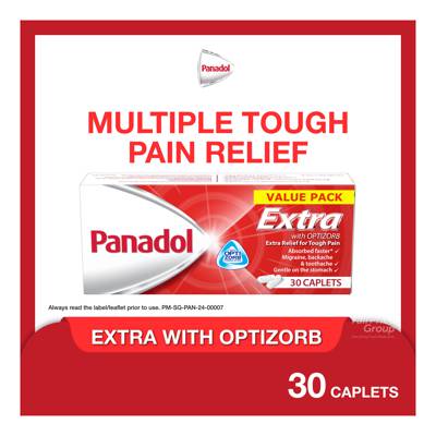 - • Panadol Extra with Optizorb technology fights 10 types of tough pain**